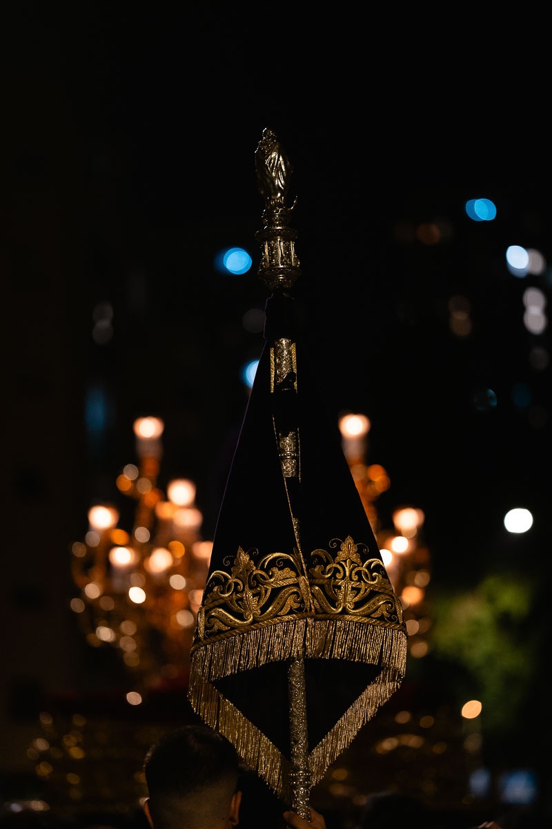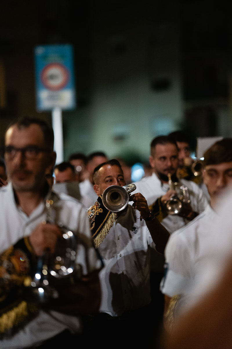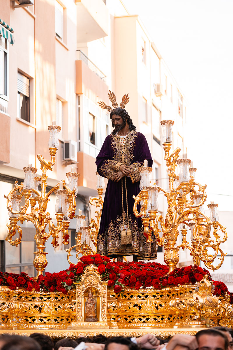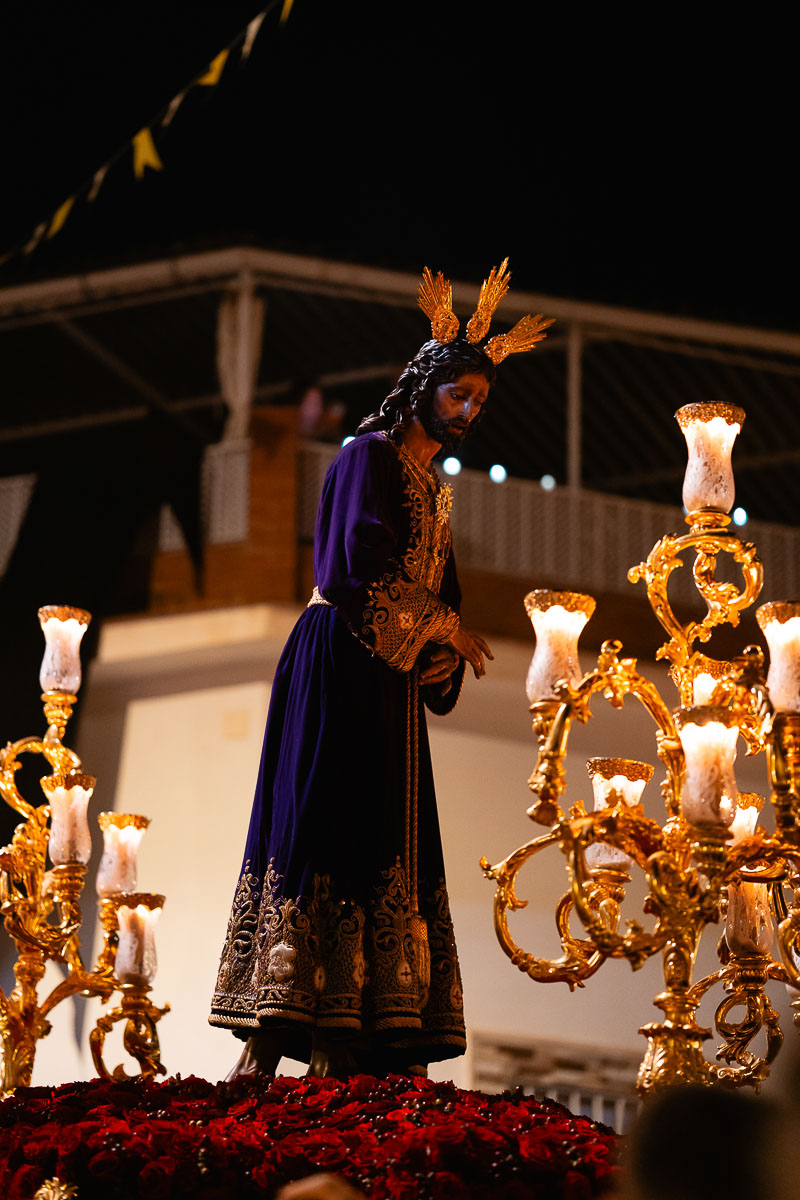 Entre los muchos instantes vividos, hay tres que permanecerán imborrables. El primero, la subida al Cementerio de San Miguel al son de Nazareno del Paso: la tenue luz, el silencio respetuoso y el marco del lugar convirtieron aquel momento en un homenaje íntimo a quienes ya descansan allí. Más adelante, el paso por Calle Tizo con la marcha El Día del Señor marcó uno de los puntos culminantes del recorrido. La cercanía del público y la estrechez de la calle hicieron que cada nota resonara con fuerza, llegando de lleno a quienes aguardaban la dulce mirada del Señor. Finalmente, el encuentro con la Virgen del Dulce Nombre, en la Pastora, cerró la jornada con un instante pleno de significado, con la Hermandad reunida ante las dos imágenes que dan sentido a su historia.