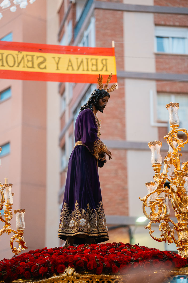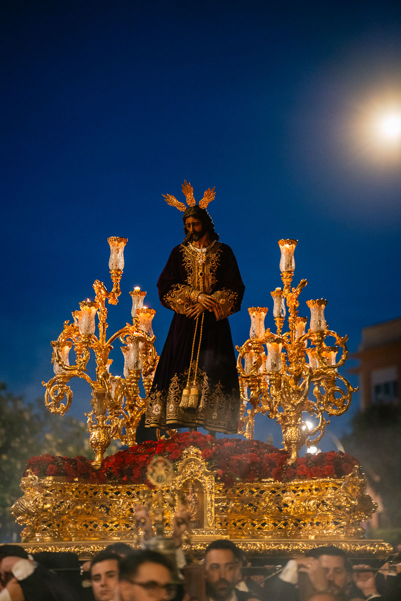 Nada más llegar a la casa hermandad de Crucifixión, enseguida notamos que esto no se trataba de una salida más. La Hermandad, acompañada de un cortejo impecable y arropada por miles de personas, ofreció una salida que supo conjugar la esencia de su barrio, con la solemnidad que caracteriza a esta entidad.