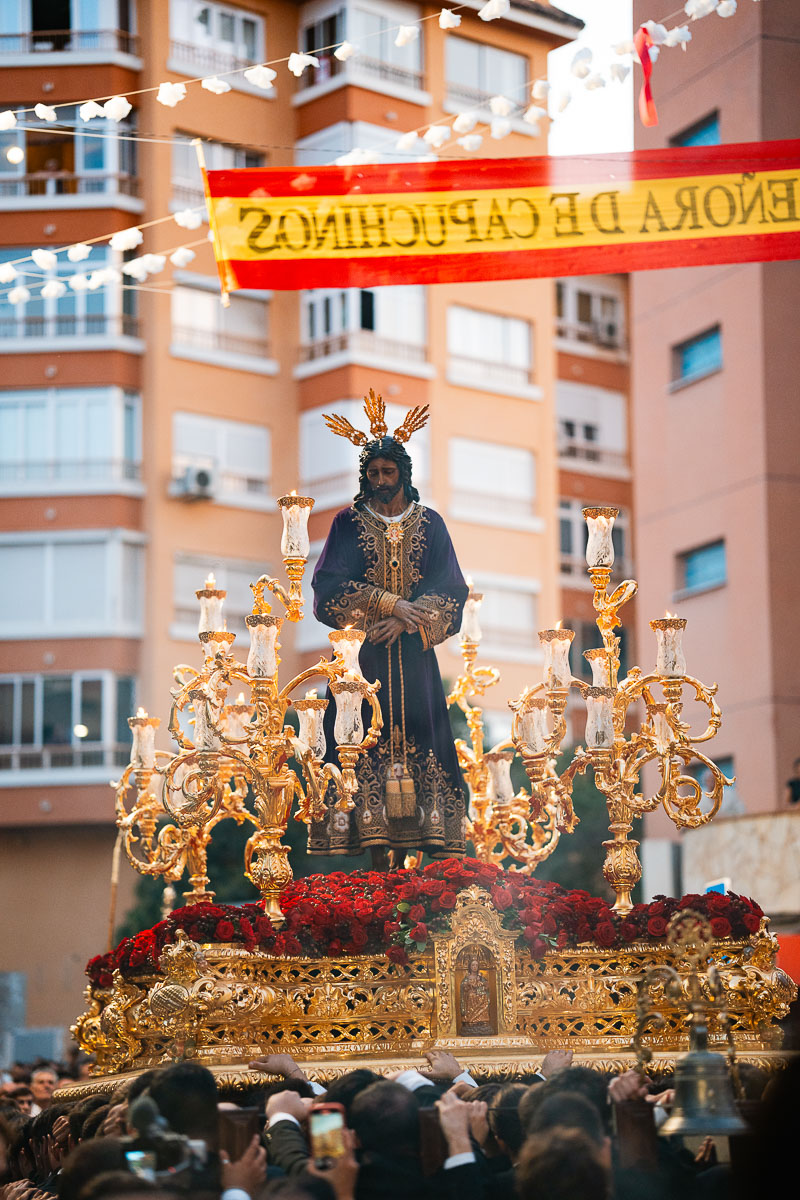 Onomástica de San Francisco de Asís. Balcones engalanados. Calles decoradas. El barrio entero de Capuchinos se prepara para recibir a uno de los suyos. Ese Cristo que cada Domingo de Ramos es el ancla al que se agarra una hermandad que conoce a la perfección aquello de no guardarse nada para sí, y entregarlo todo al que más lo necesita.